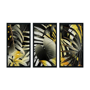 GOLDEN TROPICAL LEAVES 3 PIECE COMPOSITE FRAMED CANVAS COLLAGES