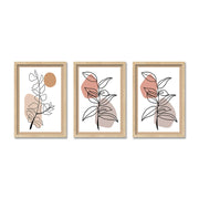 LINE ART LEAVES COMPOSITE FRAMED CANVAS COLLAGES 3PCE