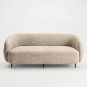 The Grabouw Sofa reimagines the classic tub silhouette into a modern, sculptural piece designed to cocoon the sitter. Its continuous, curved backrest and generous body are wrapped in premium fabrics, creating an inviting, artistic focal point for any living space. To balance its plush volume, the sofa is elevated on slim, black tapered legs that provide a striking, minimalist contrast.