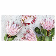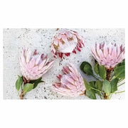 FLORAL PINK PROTEAS ON WHITE TABLECLOTH