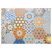 HEXAGON ORANGE AND BLUE PATTERN TILES TABLECLOTH