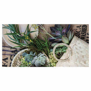 NATURAL GREEN ALOE BOUQUET IN BASKET ON HESSIAN TABLECLOTH