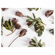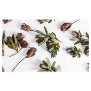 SCATTERED DRIED PROTEA WITH GREEN LEAVES TABLECLOTH