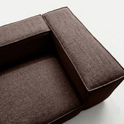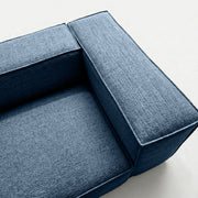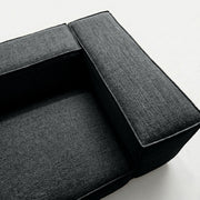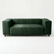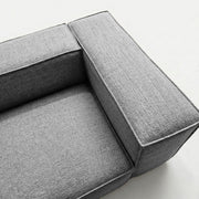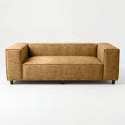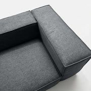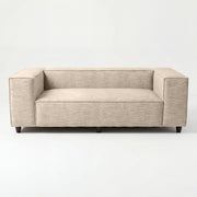 The Elgin Sofa anchors your living space with its bold presence, defined by clean, architectural lines and a sturdy, low-profile silhouette. Featuring thick, rectangular forms and crisp piped edges, the design brings a sense of modern structure and intentional weight to minimalist settings. Its wide proportions, deep seating, and broad armrests perfectly balance the structured look, creating an inviting focal point that defines a room with quiet confidence.