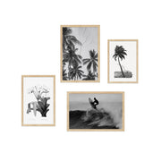 A Combination of design prints from different origins, in three different sizes, and framed in beautiful oak composite wood frames to create a 4 piece setting. We have mixed and matched the perfect curated wall art prints that complement each other, as well as the space they're put into.
