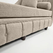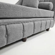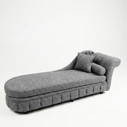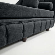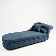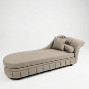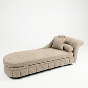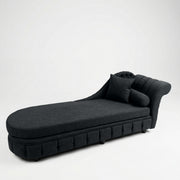 The Relaxing Chaise brings a touch of timeless sophistication to your living space with its classic, sweeping silhouette and gracefully rolled backrest. Exquisite deep button-tufting along the thick base and headrest adds a layer of tailored, vintage-inspired elegance to the design. Elevated on minimalist dark legs that provide a striking visual contrast to its plush volume, this piece serves as an artful and inviting focal point for any curated room.